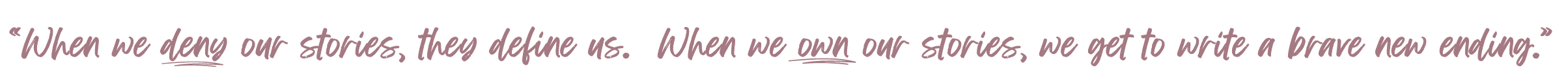 My favorite quote: “When we deny our stories, they define us. When we own our stories, we get to write a brave new ending.” I am SO excited you are here and ready to lock arms with you to help you write that “brave new ending.” Let’s go!